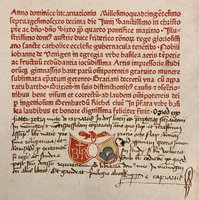 Panormitanus oder Nicolaus de Tudeschis (1386-1445) war Abt eines Benediktinierklosters bei Messina, Verfasser von Kirchenrechtskommentaren, Erzbischof von Palermo und Vertreter des Konziliarismus auf dem Konzil von Basel. Die Dekretalen-Ausgabe in der Wiss. Stadtbibliothek (aus der Bibliothek des Antoniterpräzeptors Petrus Mitte de Caprariis) zeigt auf der ersten Seite des Werkes eine kolorierte Darstellung des Kirchenlehrers und Papstes Gregors IX, der 1234 die Dekretalen als Sammlung des damals gültigen kanonischen Rechts erließ.