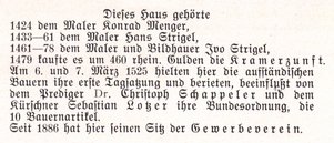 "Dieses Haus gehörte: 1424 dem Maler Konrad