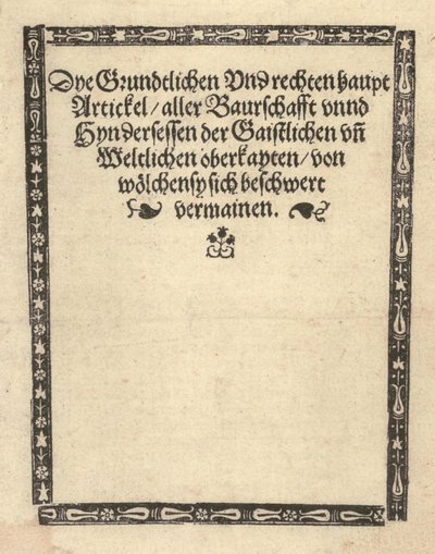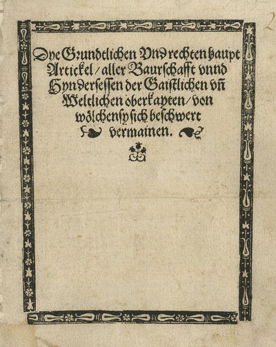 Dieses Konzentrat des bäuerlichen Aufbegehrens ("Dye Grundtlichen vnd rechten haupt Artickel, aller Bauerschafft vnnd Hyndersessen der Gaistlichen vnd Weltlichen oberkayten von woelchen sy sich beschwert vermainen") wird in kurzer Zeit in 25 Auflagen an 15 verschiedenen Druckorten (fast ausschließlich in den schwäbischen, fränkischen und thüringischen Aufstandsgebiet des Bauernkrieges) nachgedruckt, zu einem beispiellosen Manifest des Aufstandes und bisweilen auch zur Grundlage von Einigungen zwischen Obrigkeit und Untertanen.